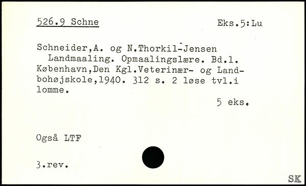 Schneider,A. og N.Thorkil-Jensen Landmaaling. Opmaalingslære. Bd.l. København,Den Kgl.Veterinær- og Landbohø jskole,1940.