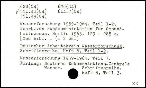 Wasserforschung 1959-1964. Teil 1-2. Bearb.von Bundesministerium für Gesundheitswesen.