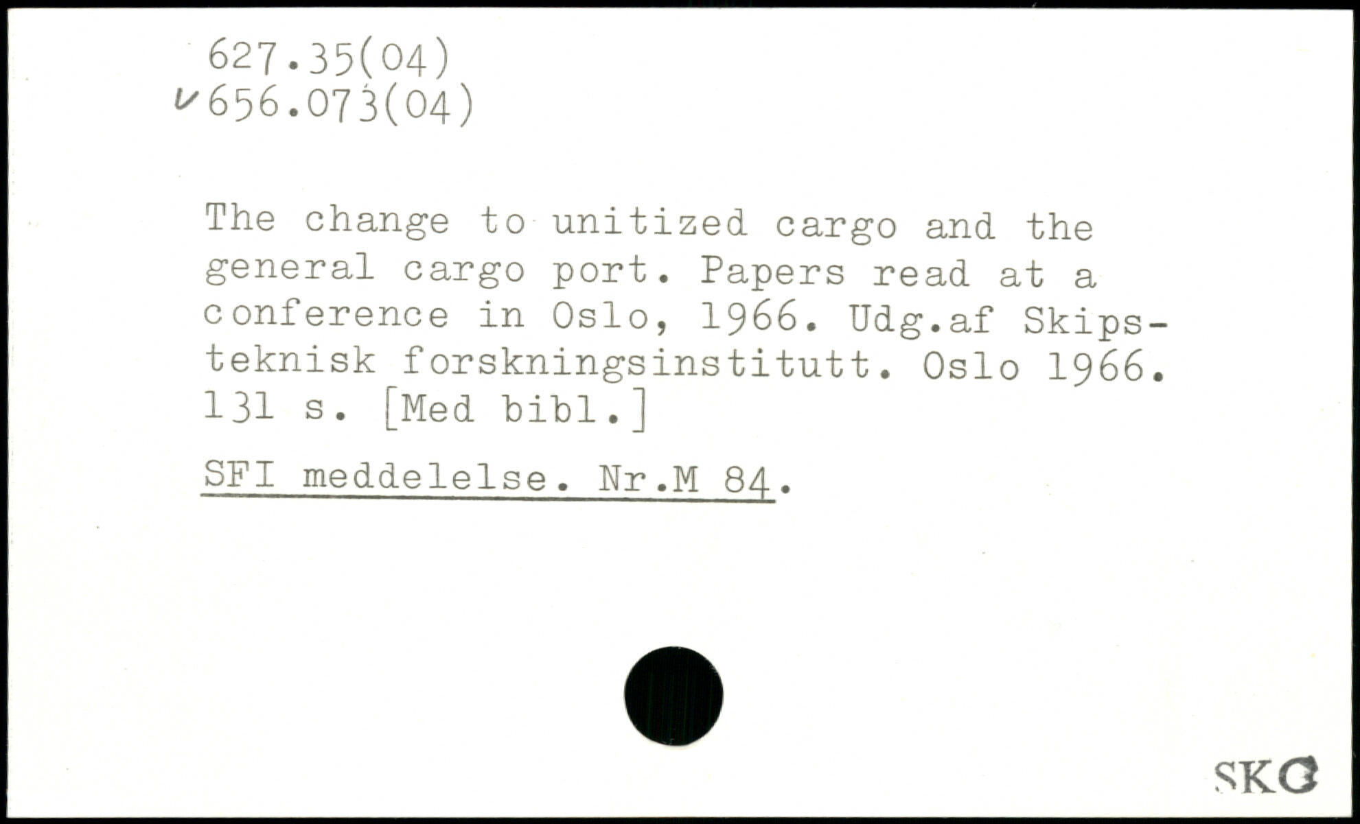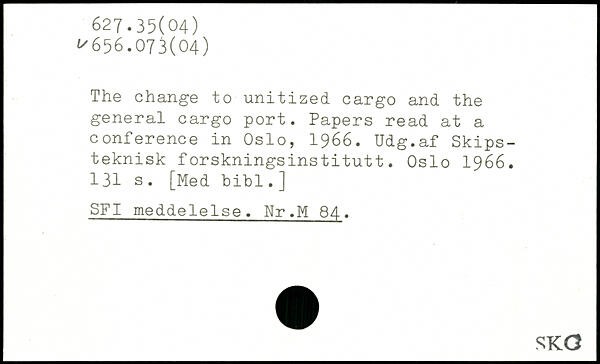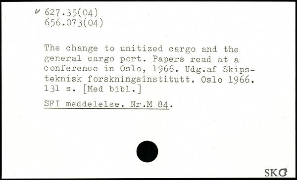 The change to unitized cargo and the general cargo port. Papers read at a conference in Oslo, 1966. Udg.af Skips-teknisk forskningsinstitutt. Oslo 1966.