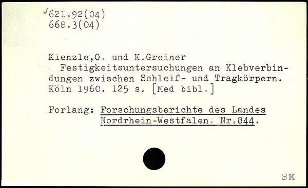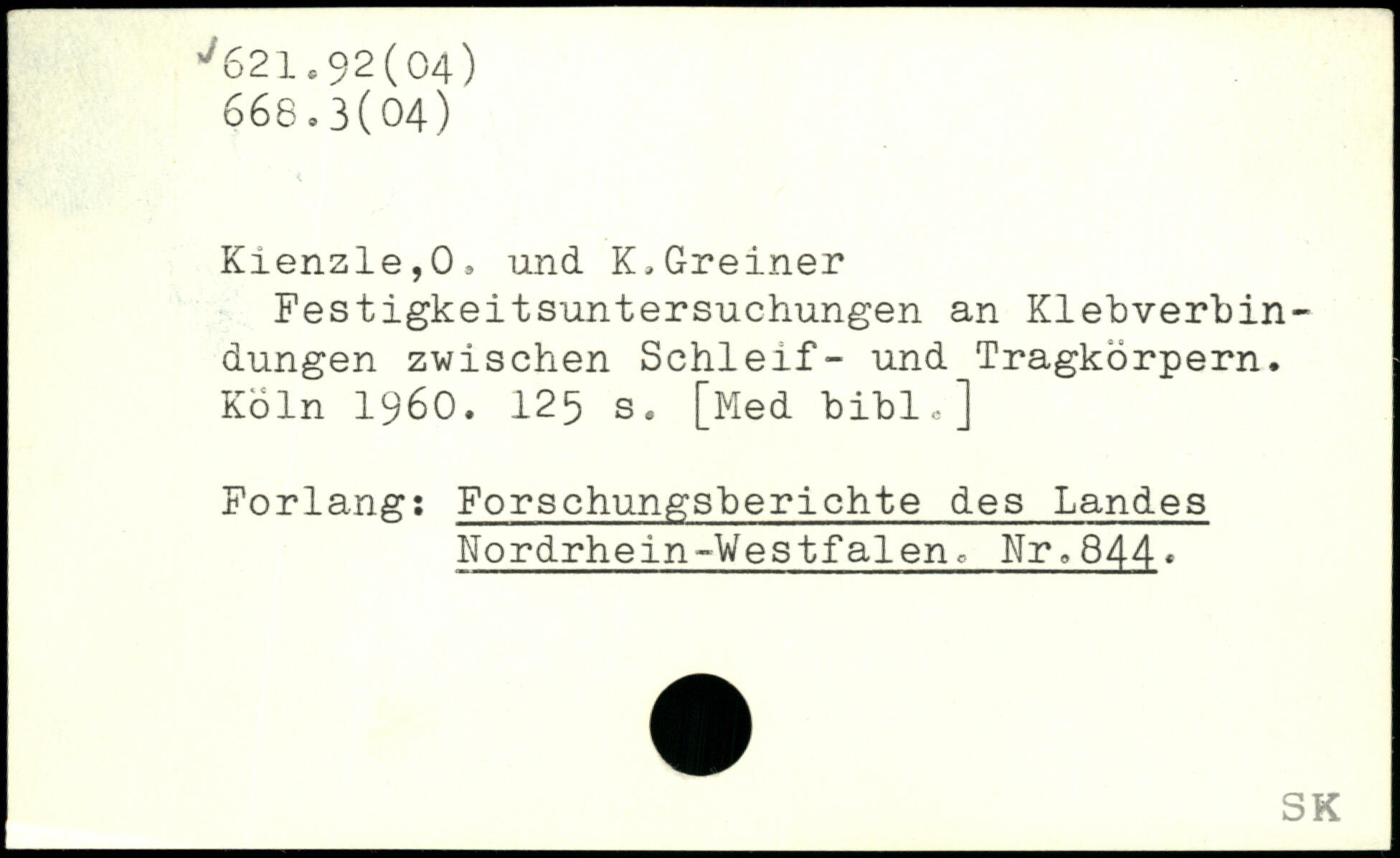 Kienzle,0, und K.Greiner Festigkeitsuntersuchungen an Klebverbin-düngen zwischen Schleif- und Tragkörpern.