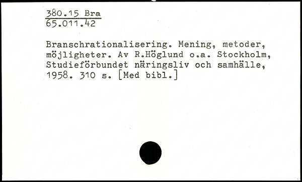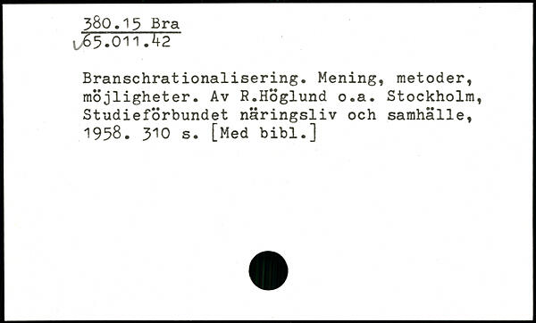 Branschrationalisering. Mening, metoder, möjligheter. Av R.Höglund o.a.