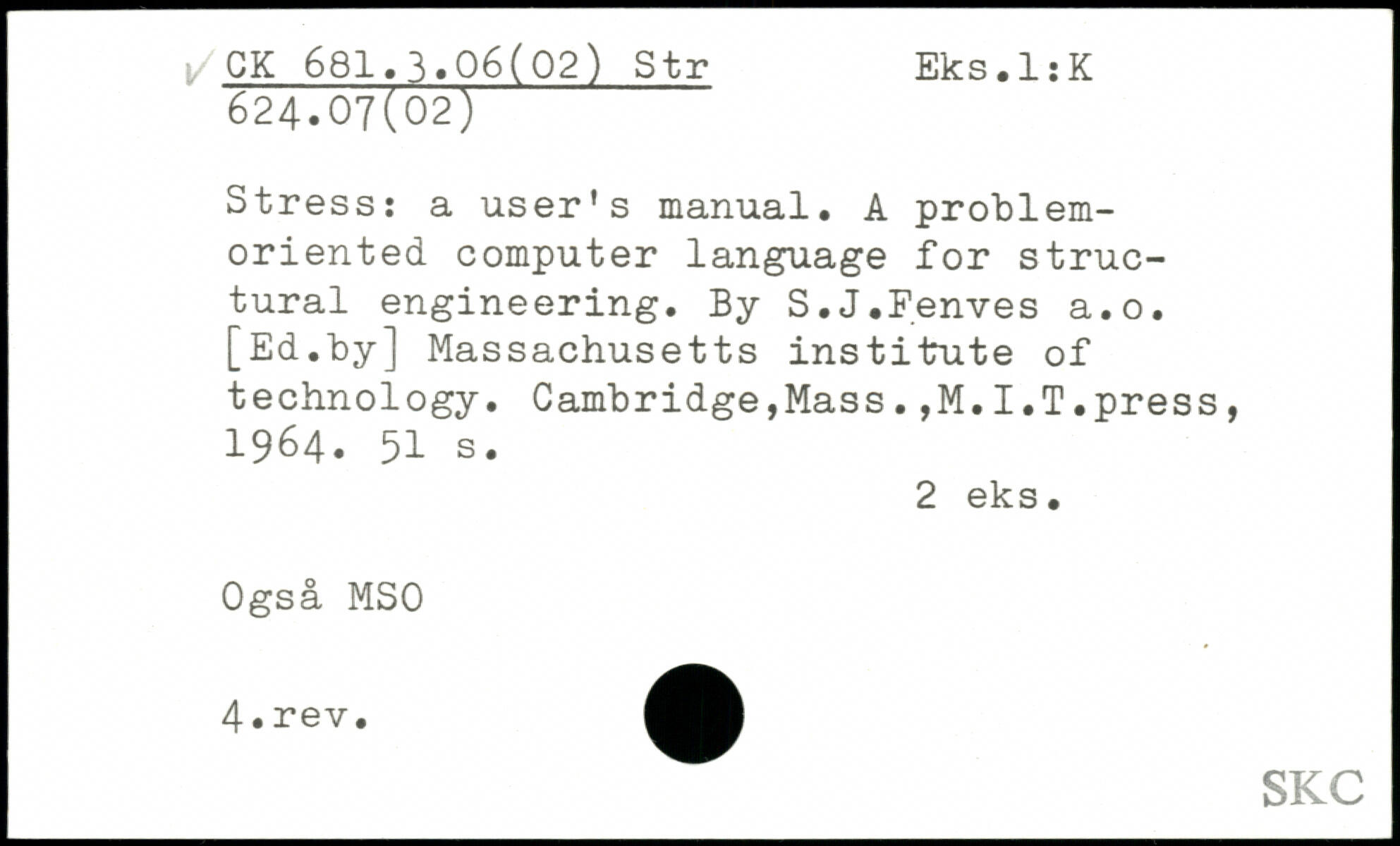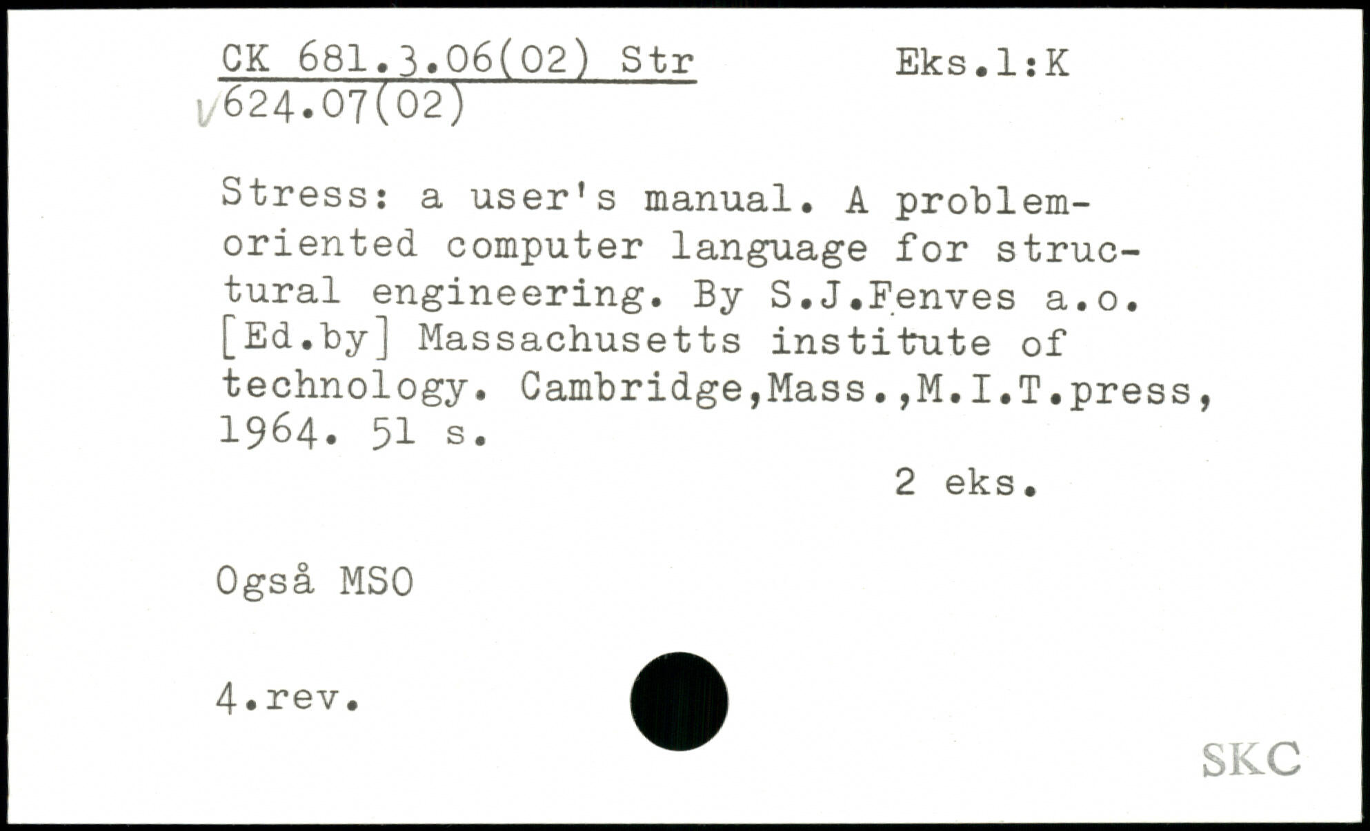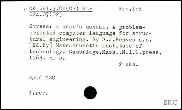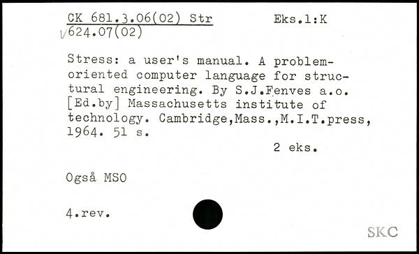 Stress: a user’s manual. A problem-oriented computer language for structural engineering. By S.J.Fenves a.o.