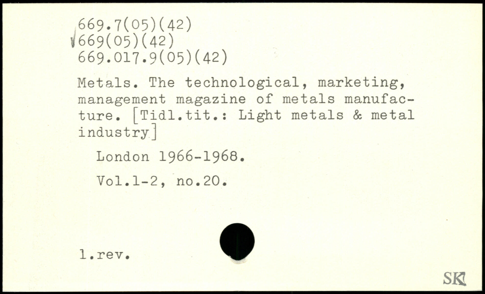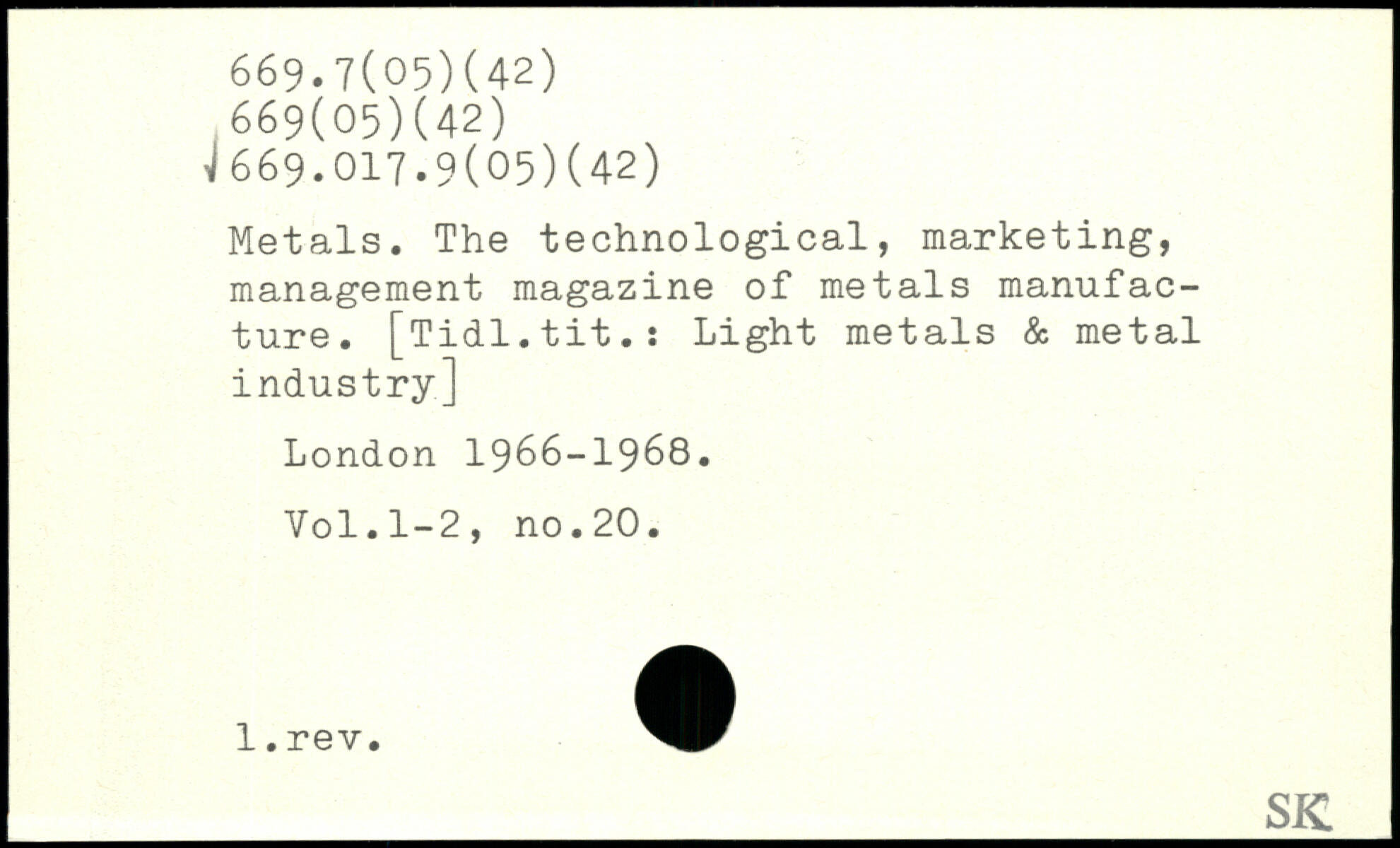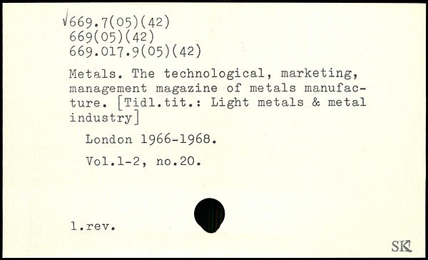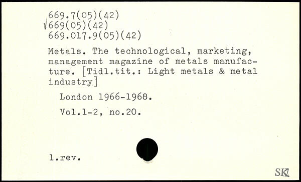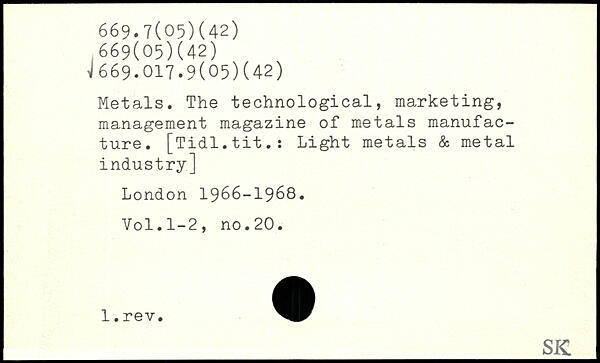 Metals. The technological, marketing, management magazine of metals manufacture. [Tidl.tit.: Light metals & metal industry]