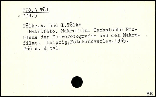 Tolke,A. und I.TÖlke Makrofoto. Makrofilm. Technische Probleme der Makrofotografie und des Makrofilms.