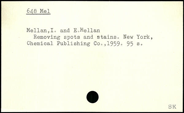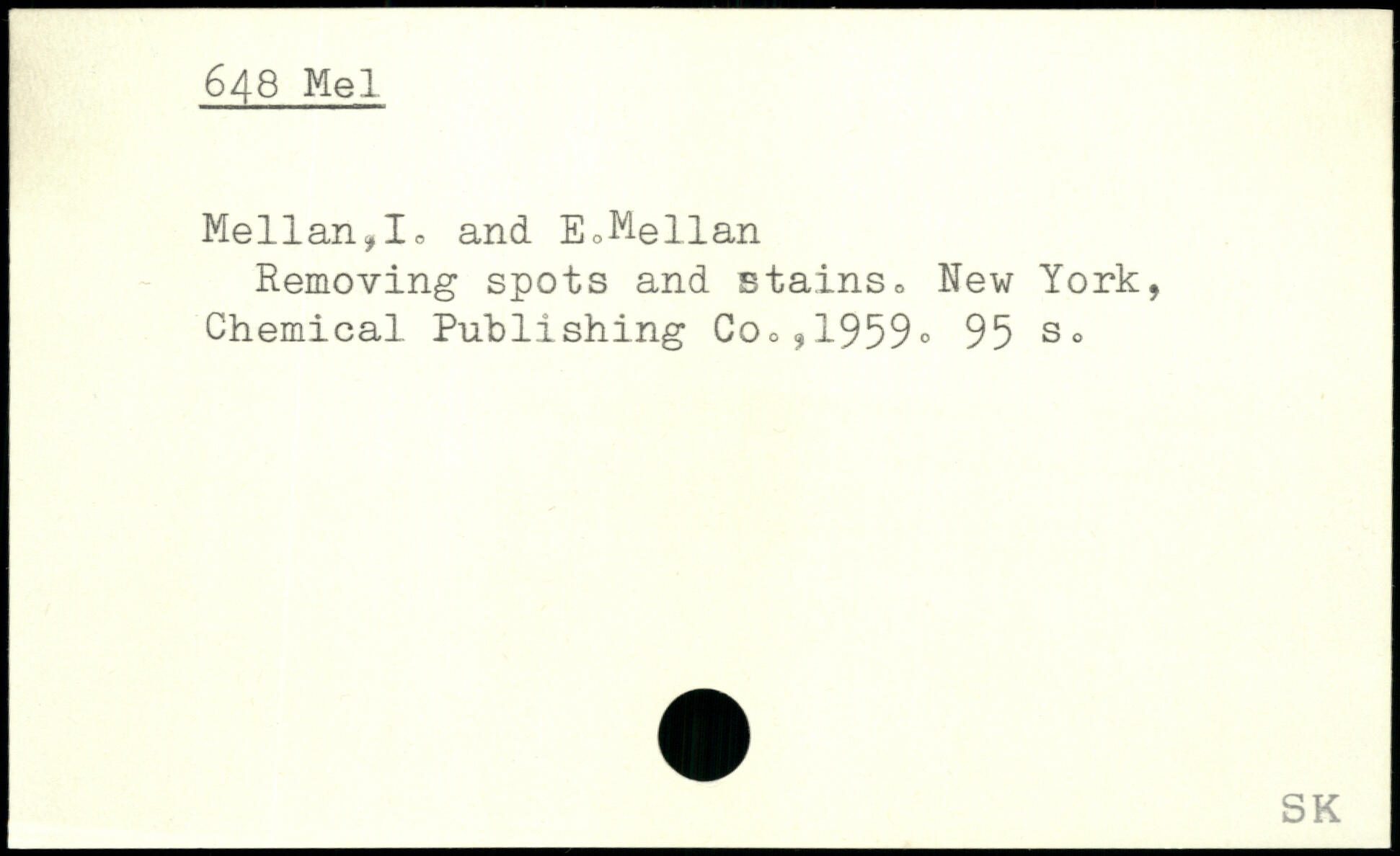 Mellan,Io and E^Mellan Removing spots and stains, New York, Chemical. Publishing Co0,1959<> 95