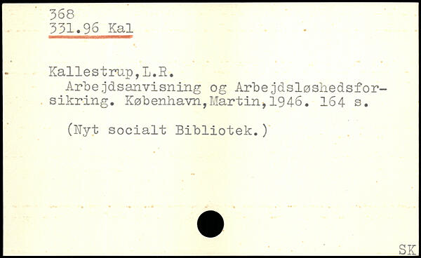 Årlejdsanvisning og Arbejdsløshedsforsikring. København, Martin.1946.