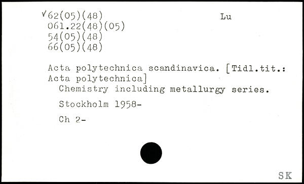 Acta polytechnica scandinavica. [Tidl.tit.s Acta polytechnica] Chemistry including metallurgy series.