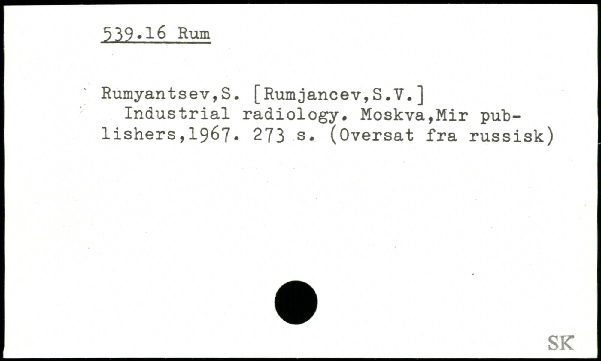 Rumyantsev,S. [Rumjancev,S.V. ] Industrial radiology.