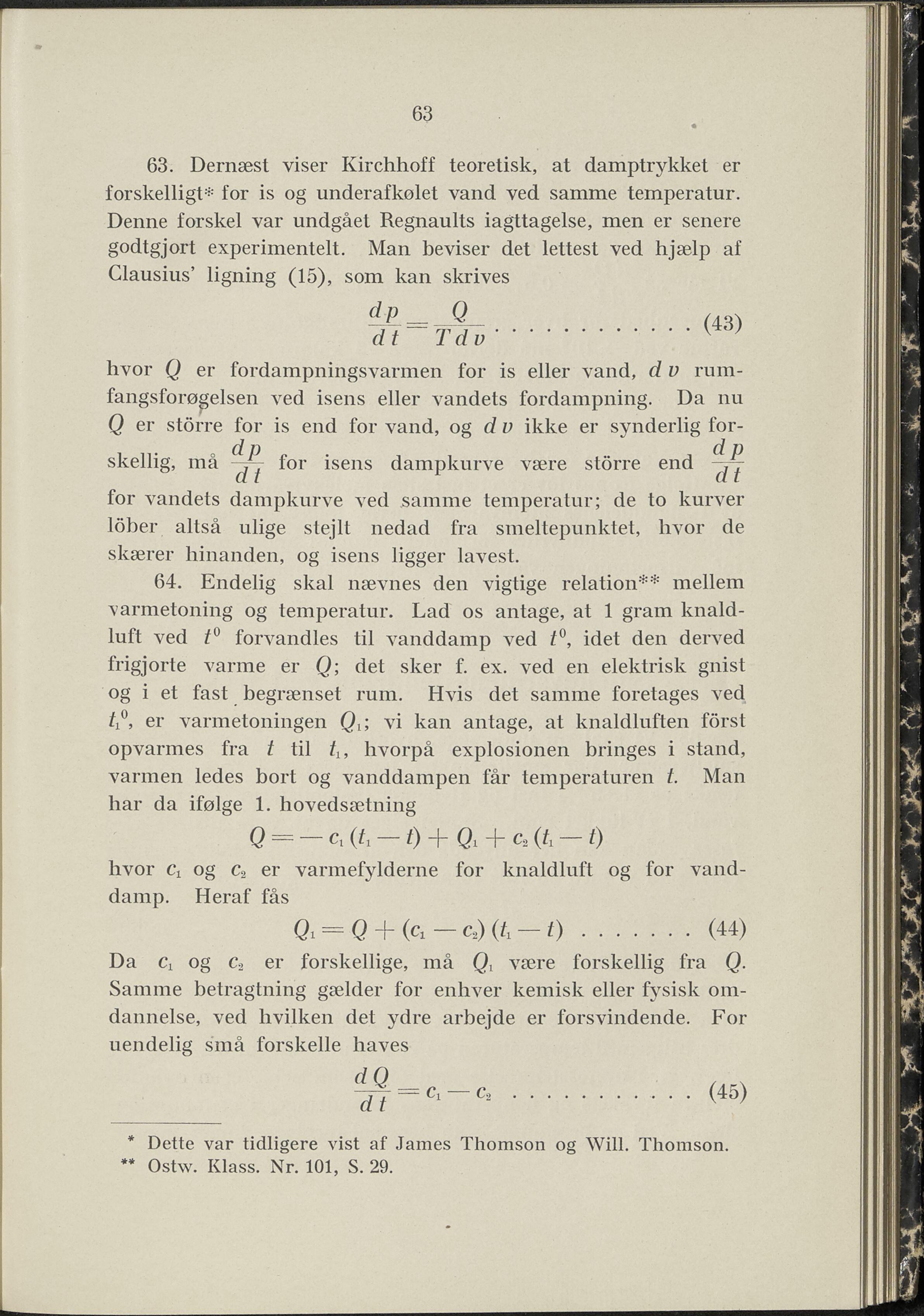 63. Dernæst viser Kirchhoff teoretisk, at damptrykket er