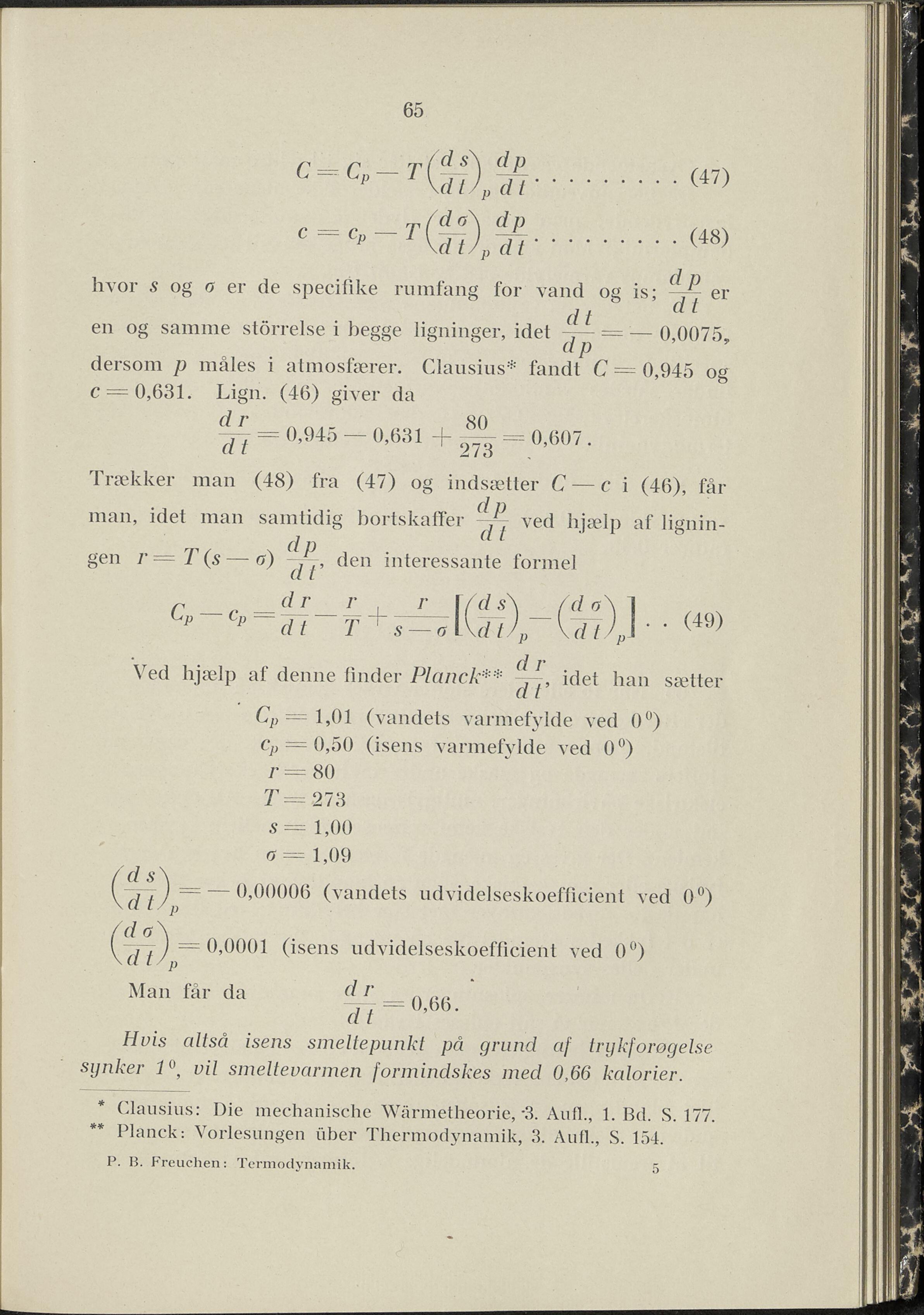 dersom p måles i atmosfærer. Clausius* fandt C = 0,945 og
