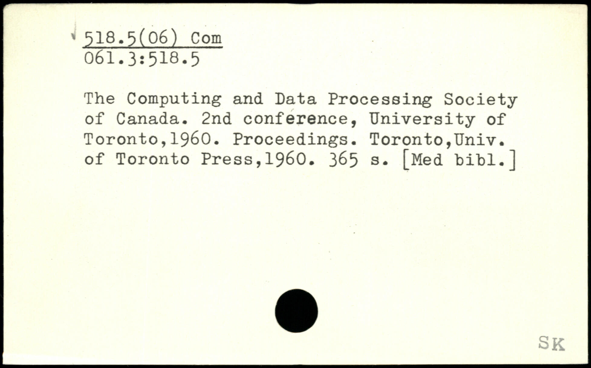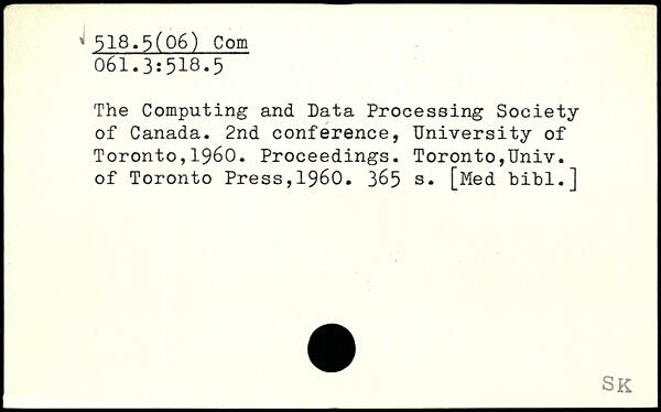 The Computing and Data Processing Society of Canada. 2nd conference, University of Toronto,1960. Proceedings. Toronto,Univ. of Toronto Press,1960.