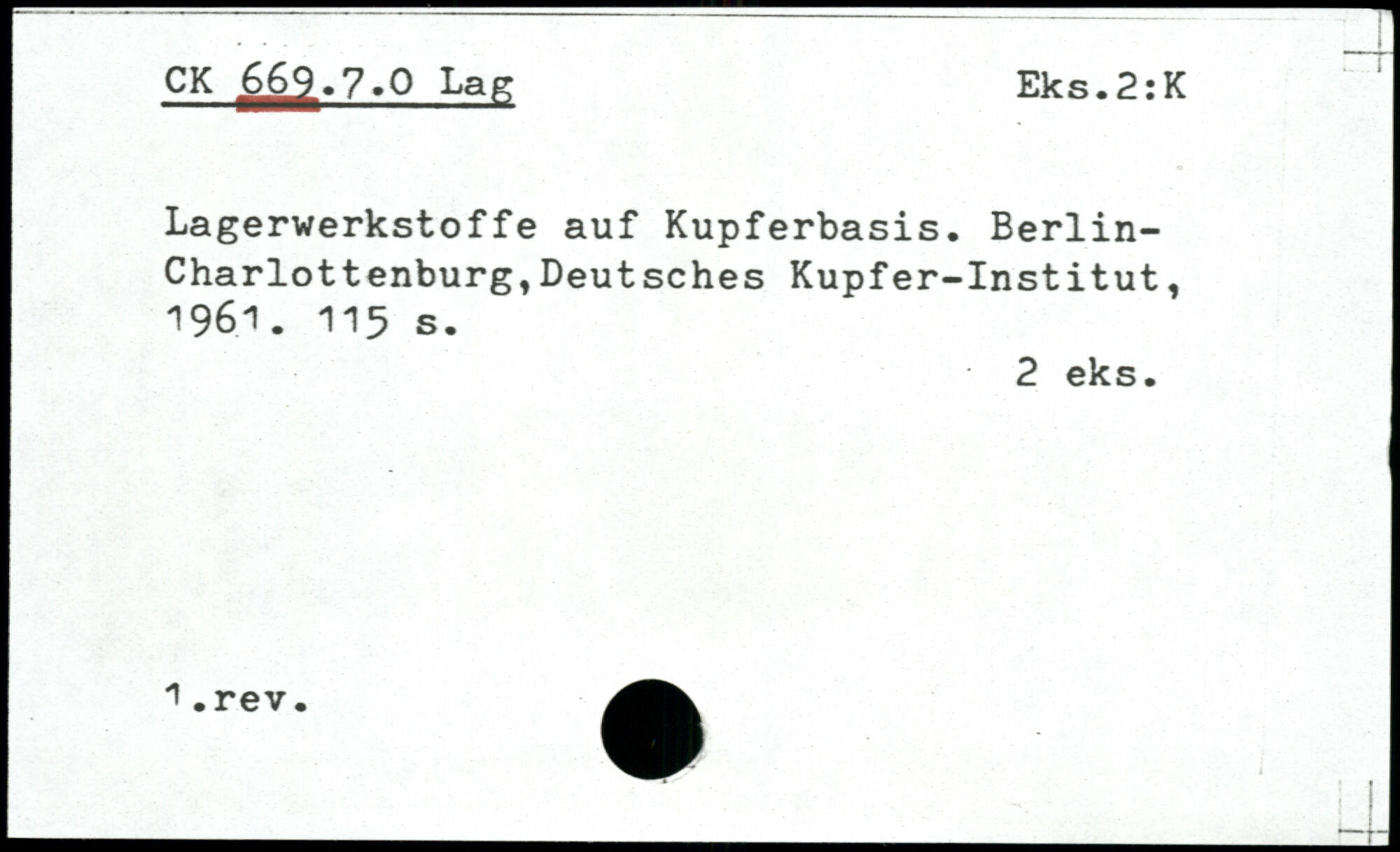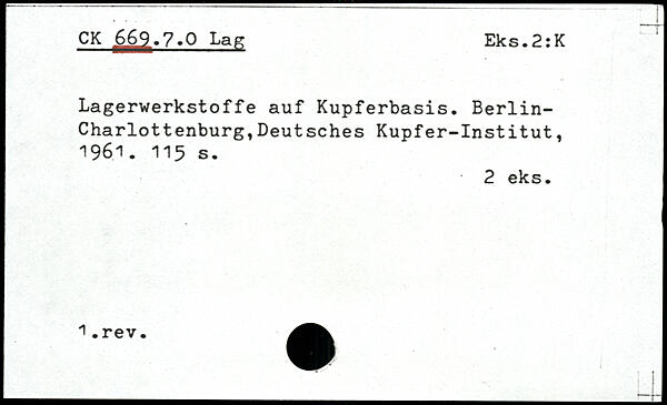 Lagerwerkstoffe auf Kupferbasis. Berlin-Charlottenburg, Deutsches Kupfer-Institut, 196.1.