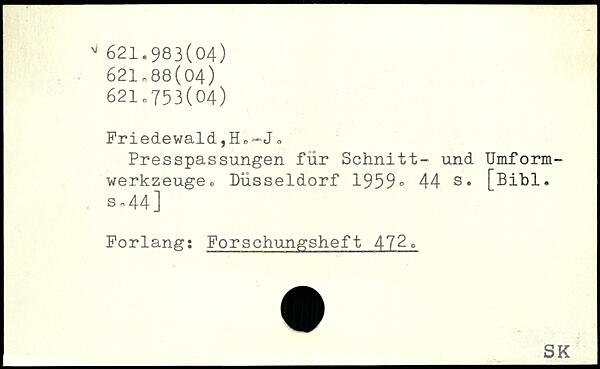 Presspassungen für Schnitt- und Umform-werkzeuge. Düsseldorf 1959®