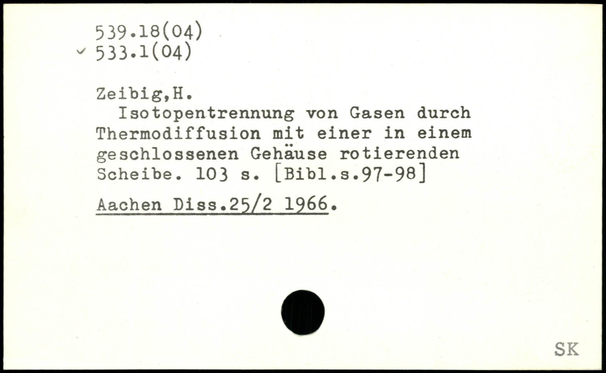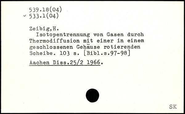 Isotopentrennung von Gasen durch Thermodiffusion mit einer in einem geschlossenen Gehäuse rotierenden Scheibe.