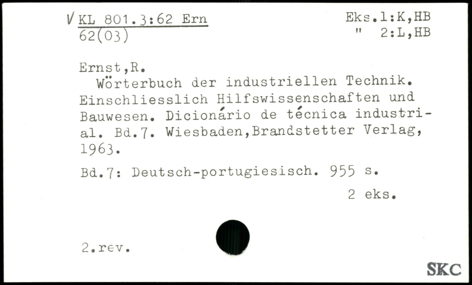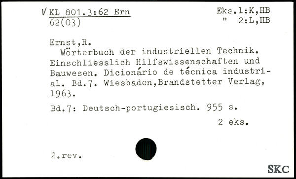 Wörterbuch der industriellen Technik, Einschliesslich Hilfswissenschaften und Bauwesen. Dicionario de tecnica industrial.