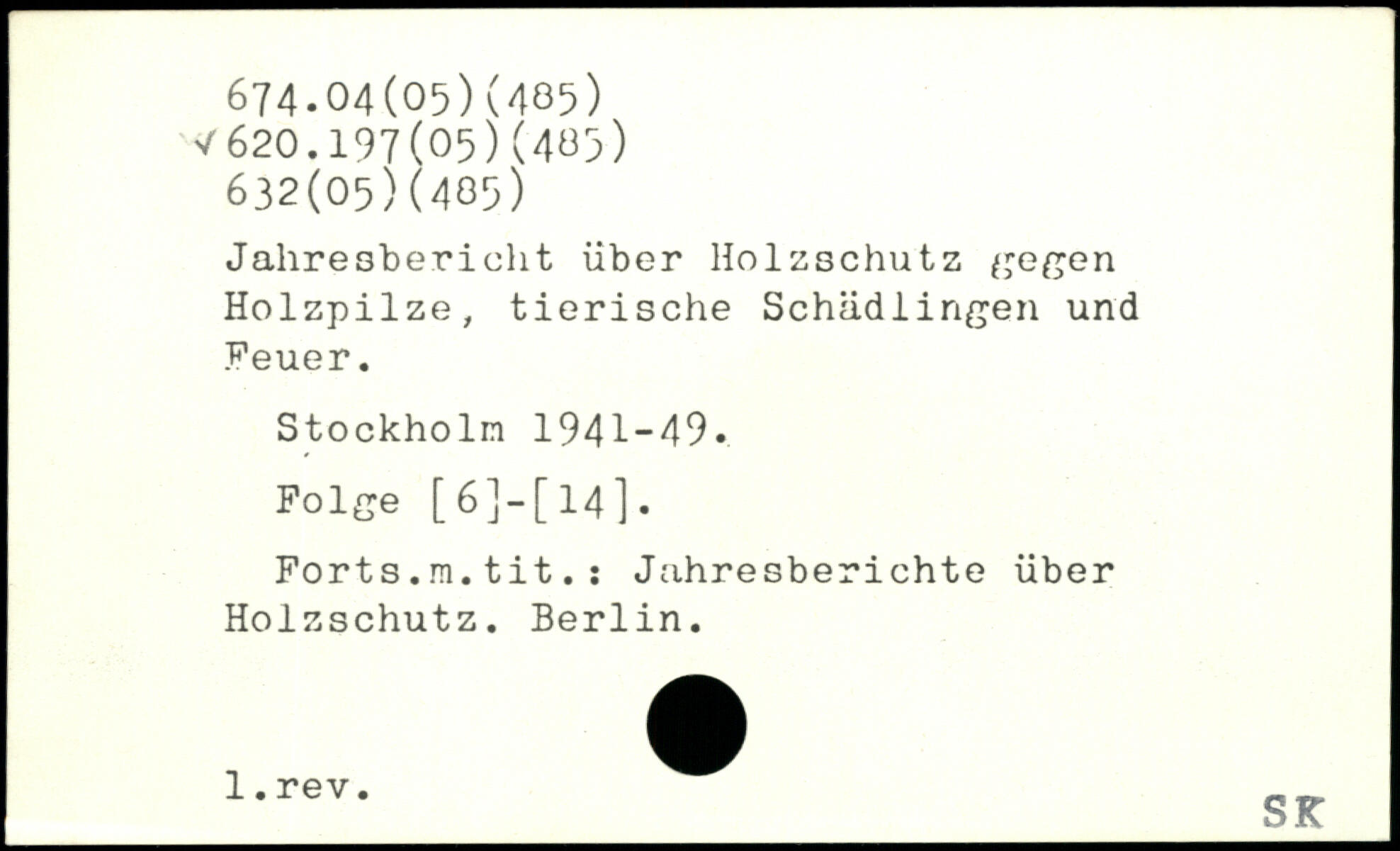 Jahresbericht über Holzschutz gegen Holzpilze, tierische Schädlingen und Feuer.
