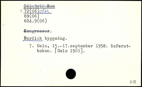 -Kongroooer. Nordisk byggedag. 7. Oslo, 1517.september 1958. Referatboken. [Oslo 1960].