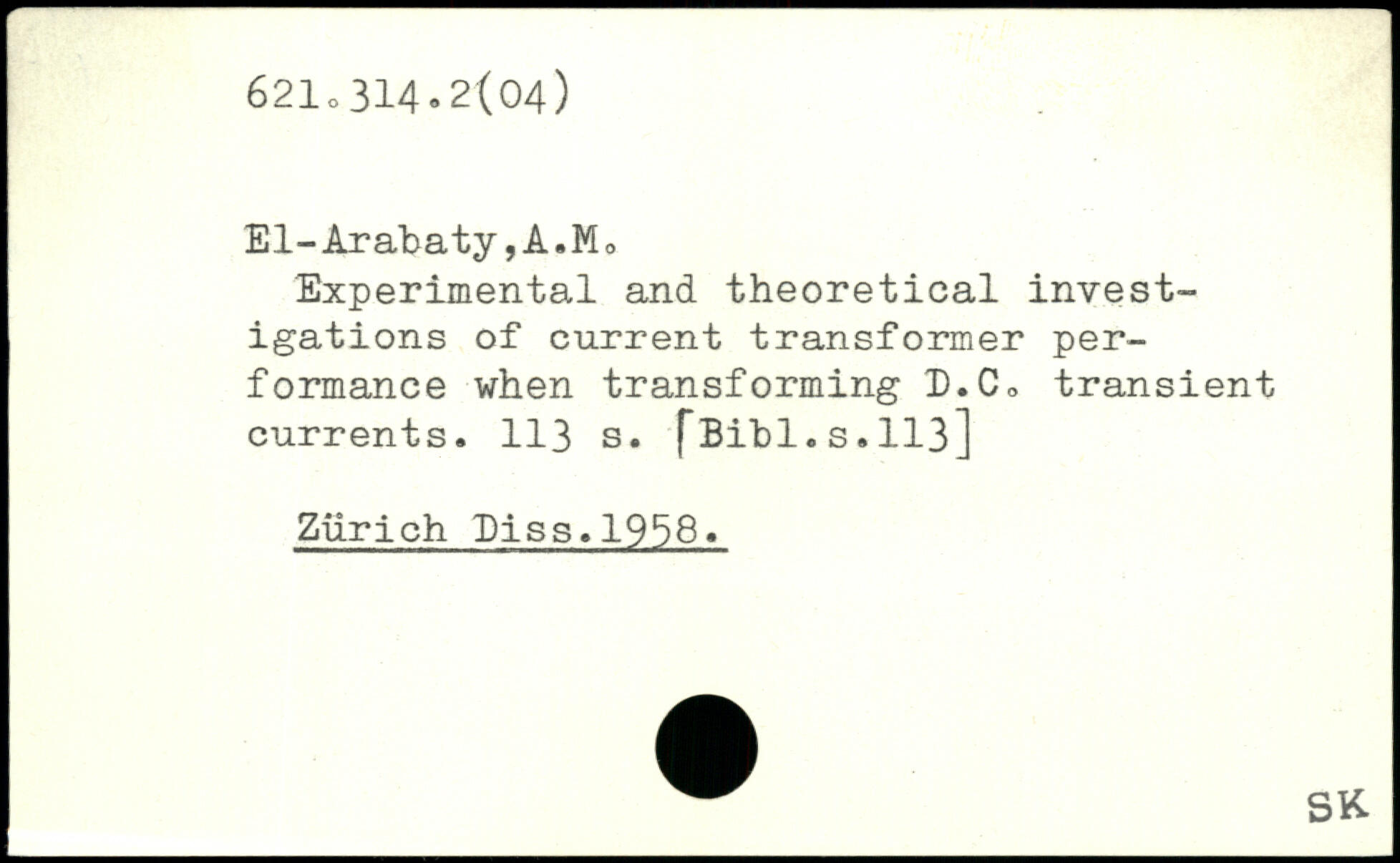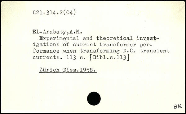 Experimental and theoretical investigations of current transformer performance when transforming D.C. transient currents.