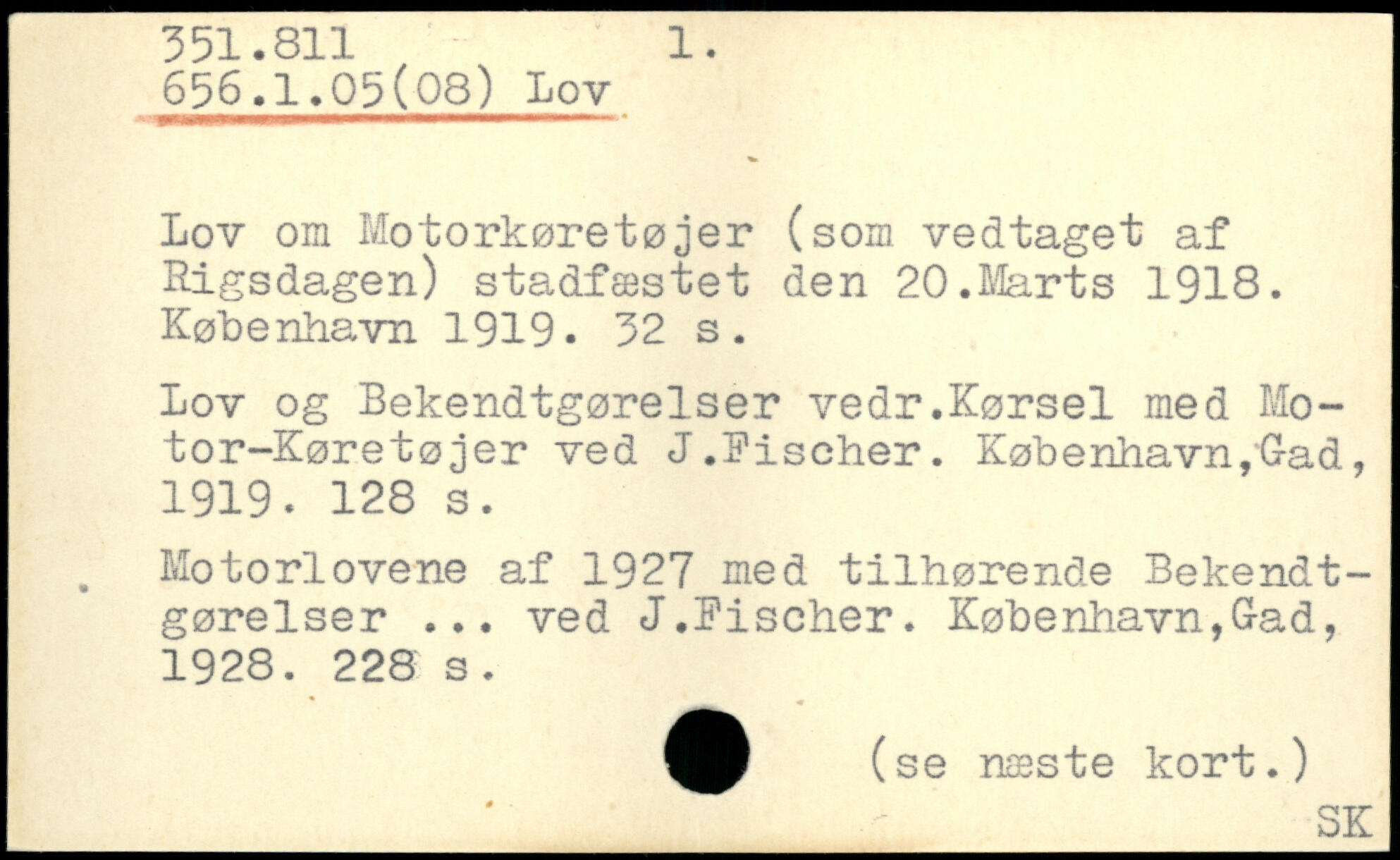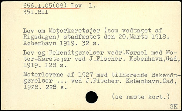 Lov om Motorkøretøjer (som vedtaget af Rigsdagen) stadfæstet den 20.Marts 1918.