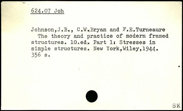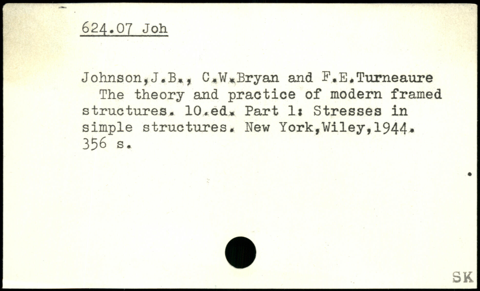 Johnson,J.B., C,W.Bryan and F.E.Turneaure The theory and practice of modern framed structures.