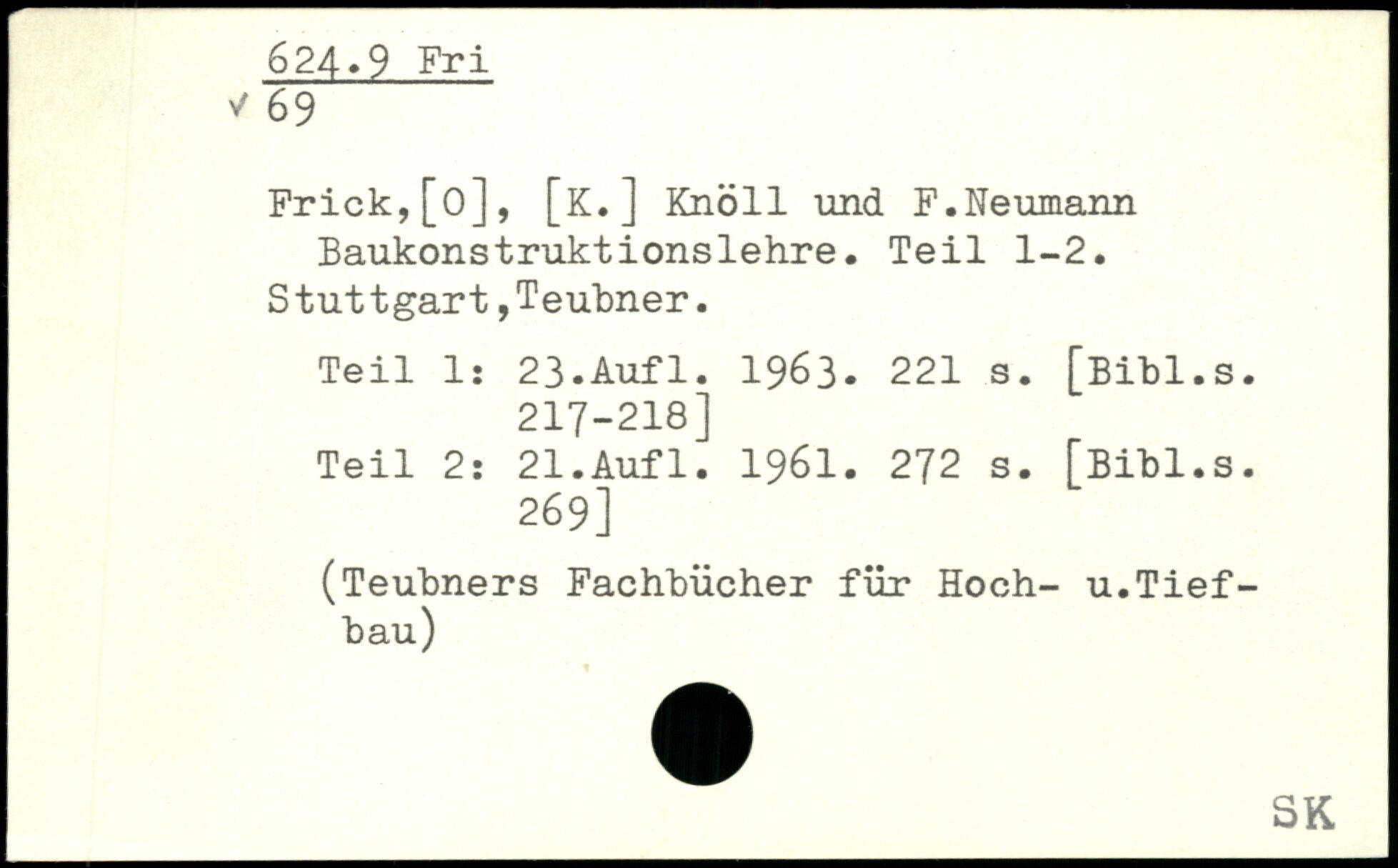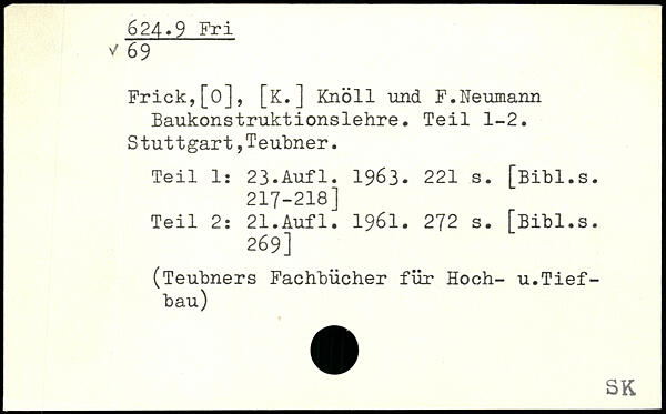 Frick,[o], [K.] Knöll und F.Neumann Baukonstruktionslehre. Teil 1-2. S tut tgart,Teubner. Teil 1: