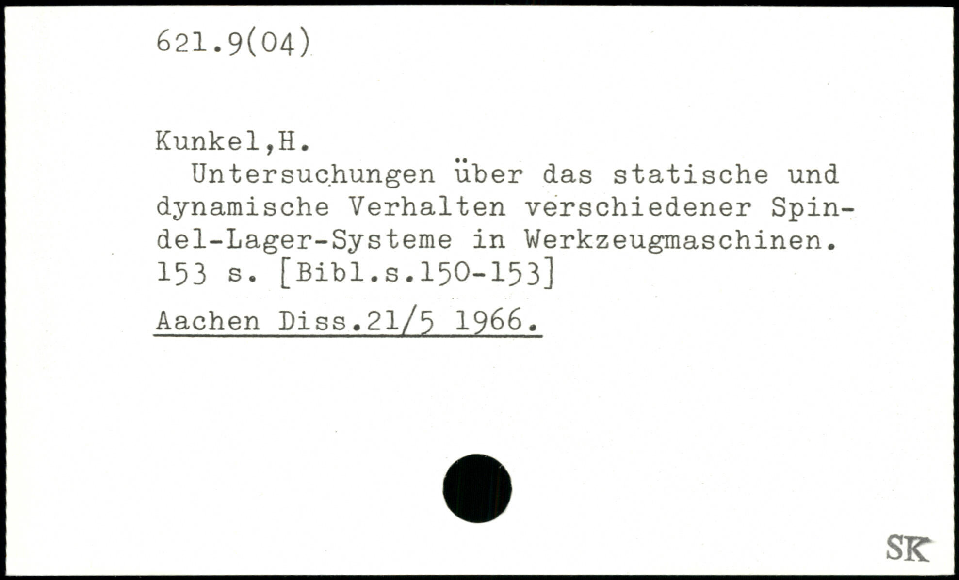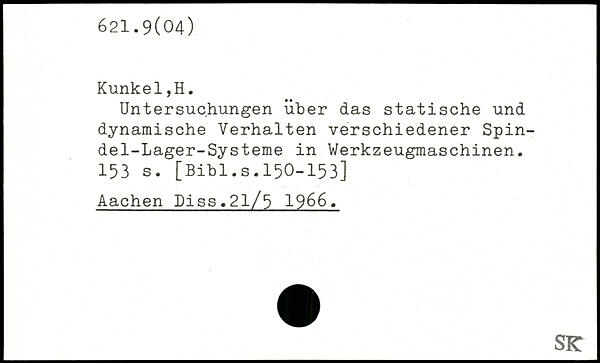 Untersuchungen über das statische und dynamische Verhalten verschiedener Spin-del-Lager-Systeme in Werkzeugmaschinen.