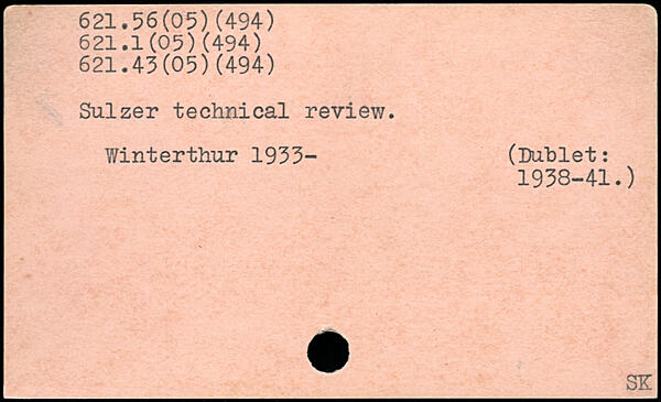 Sulzer technical review. Winterthur 1933- (Biiblet: 1938-41.)