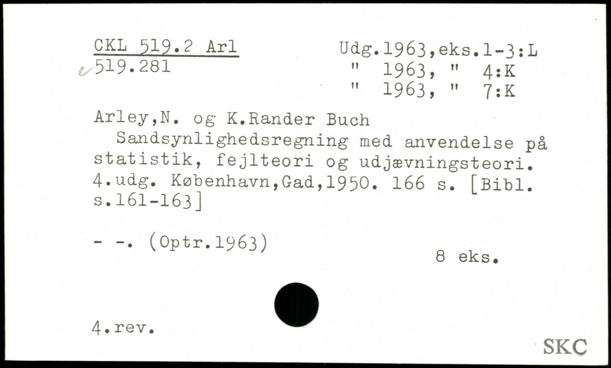 " 1963, " 7:K Arley,N. og K.Rander Buch Sandsynlighedsregning med anvendelse på statistik, fejlteori og udjævningsteori.