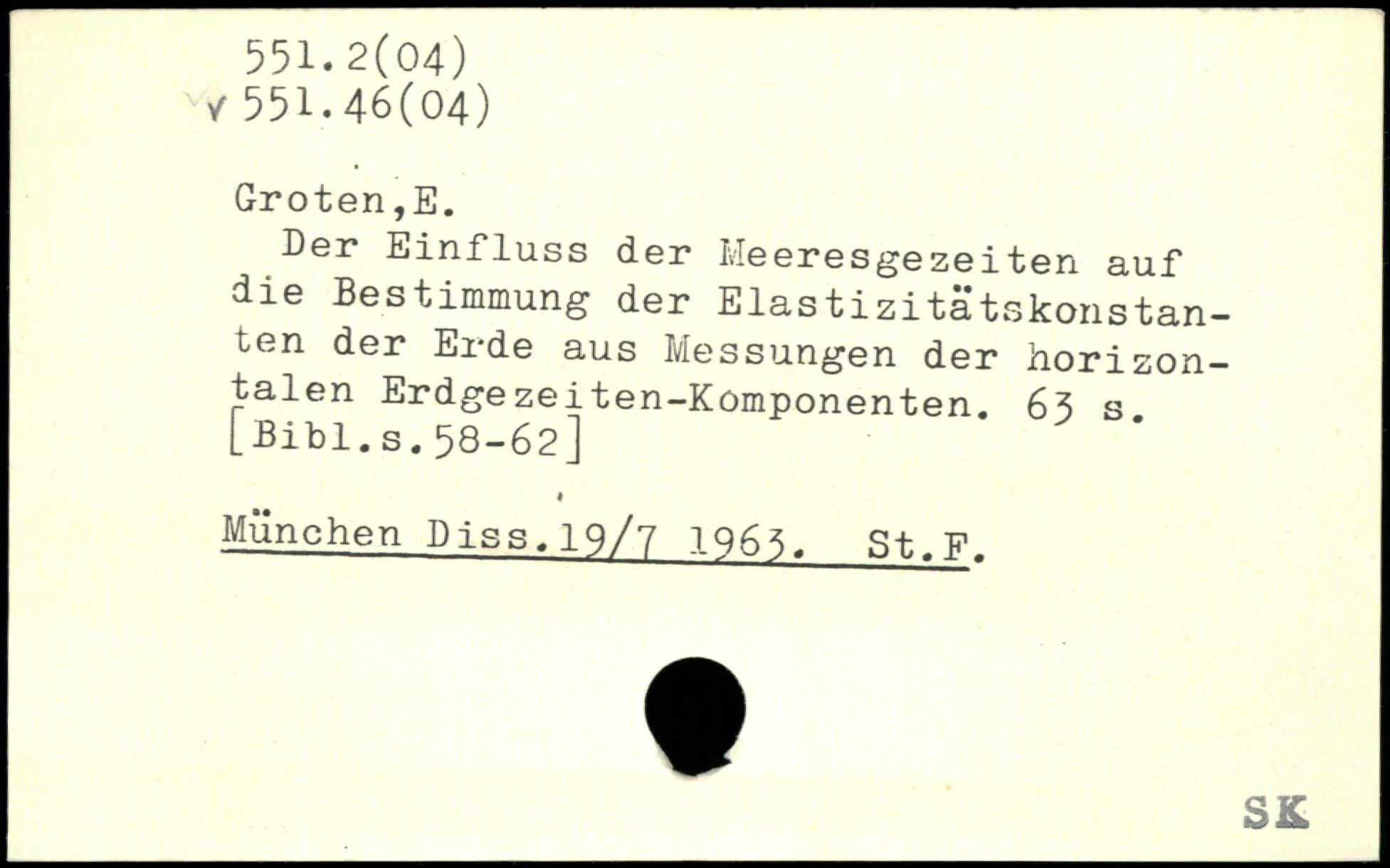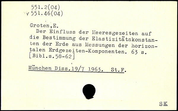 Der Einfluss der Heeresgezeiten auf die Bestimmung der Elastizitatskonstan-ten der Erde aus Messungen der horizontalen Erdgezeiten-Kömponenten.
