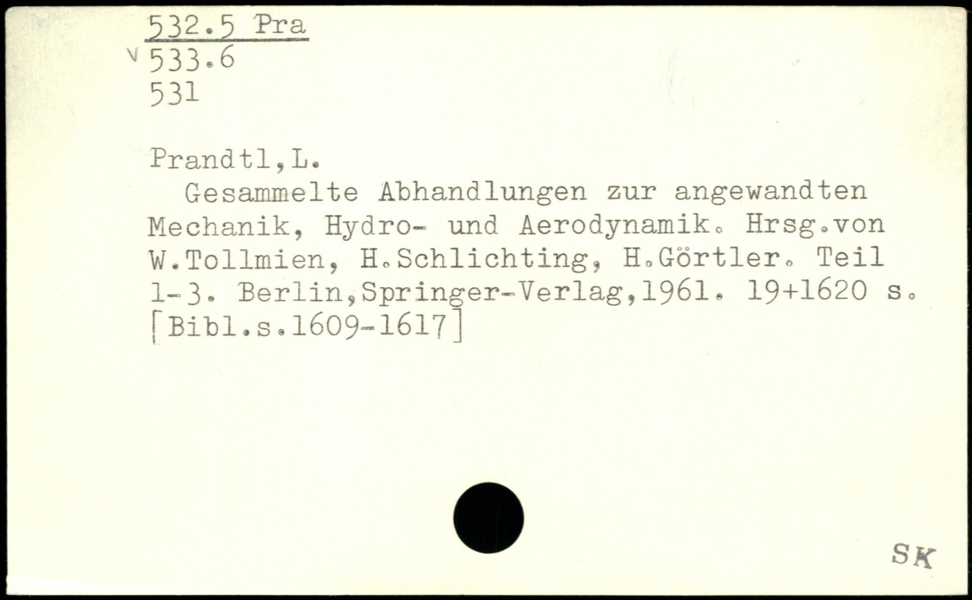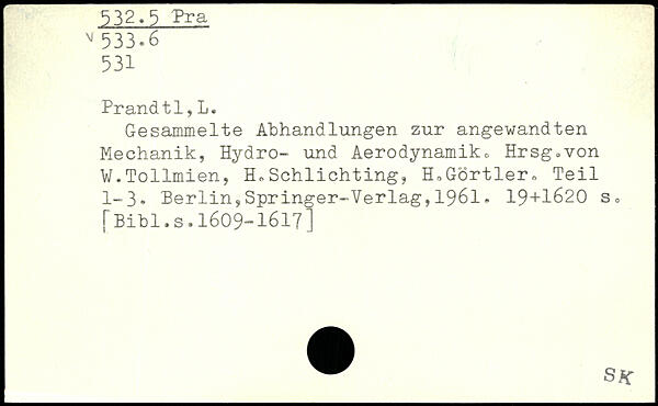 Gesammelte Abhandlungen zur angewandten Mechanik, Hydro- und Aerodynamik, Hrsg,von W.Tollmien, H, Schlichting, HoGörtler. Teil 1-3