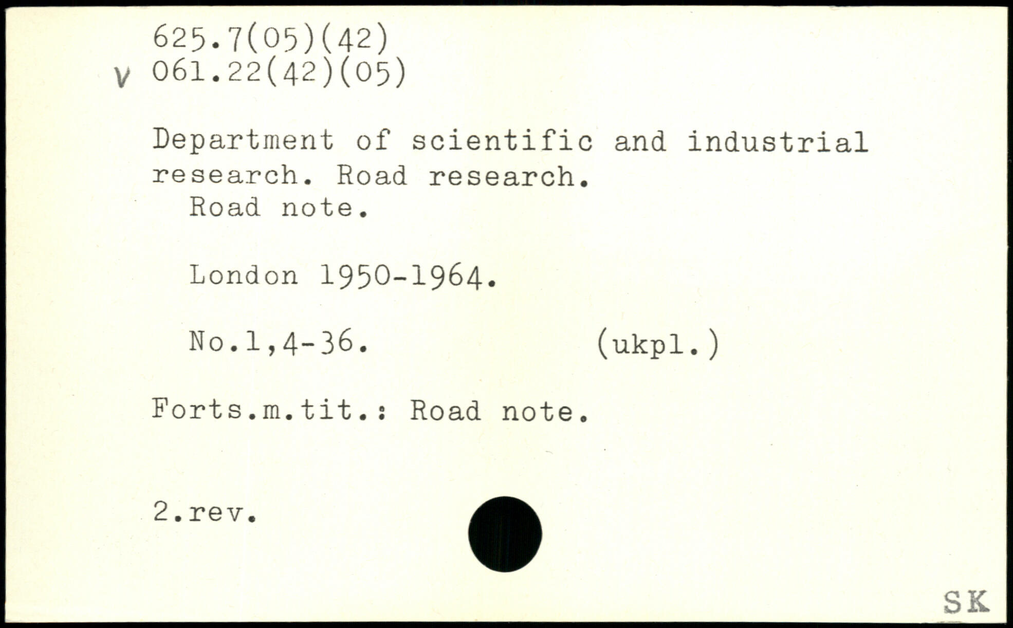 Department of scientific and. industrial research. Road research. Road note.