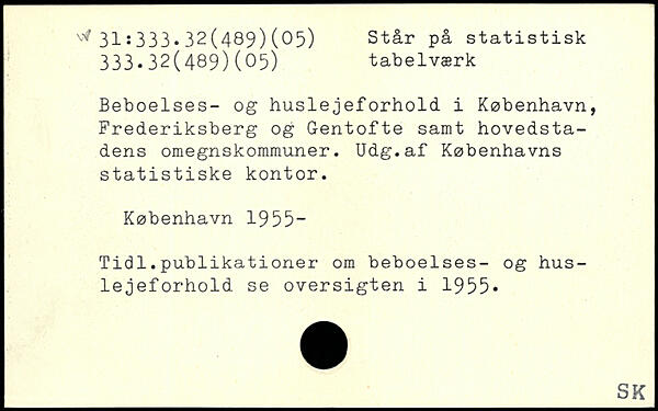 tabelværk Beboelses- og huslejeforhold i København, Frederiksberg og Gentofte samt hovedstadens omegnskommuner. Udg.af Københavns statistiske kontor.