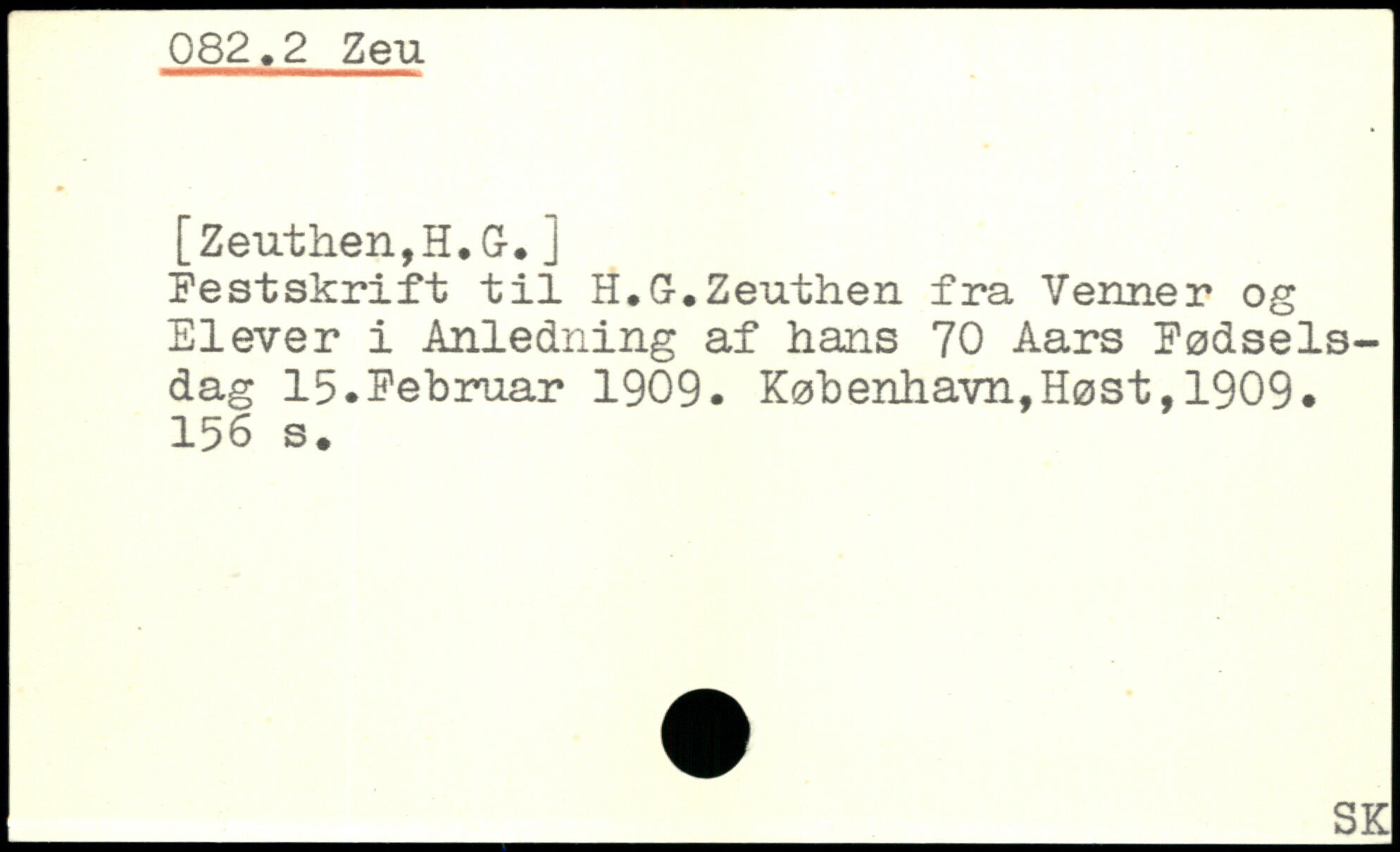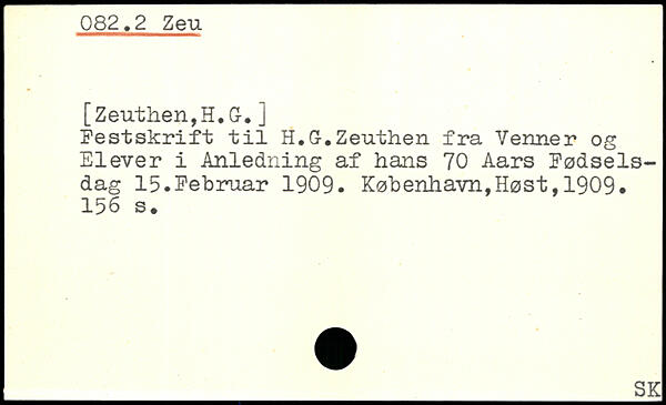 Festskrift til H.G-. Zeuthen fra Venner og Elever i Anledning af hans 70 Aars Fødselsdag 15.Februar 1909.