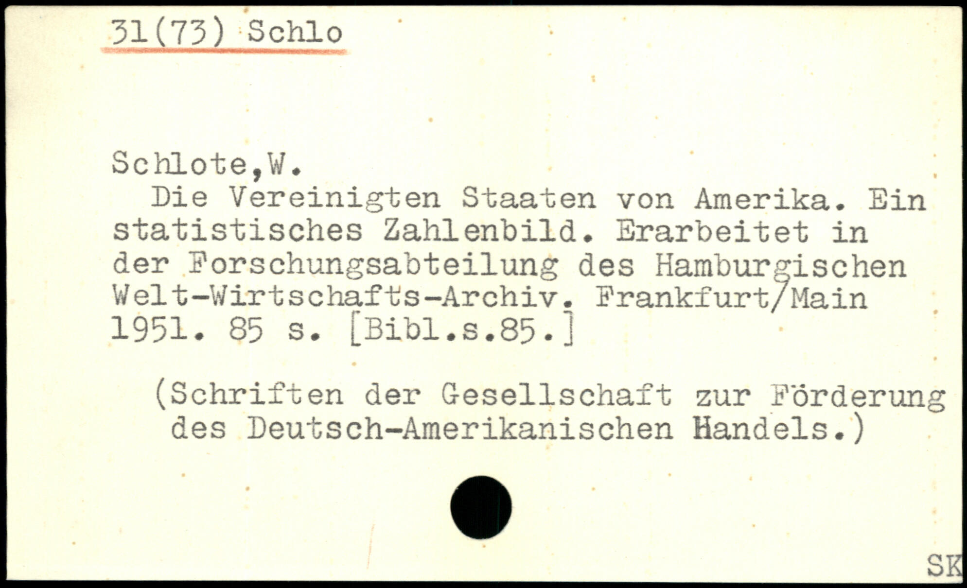 Die Vereinigten Staaten von Amerika. Ein statistisches Zahlenbild. Erarbeitet in der Forschungsabteilung des Hamburgischen Welt-Wirt s chafts-Archiv. Frankfurt/Main 1951.