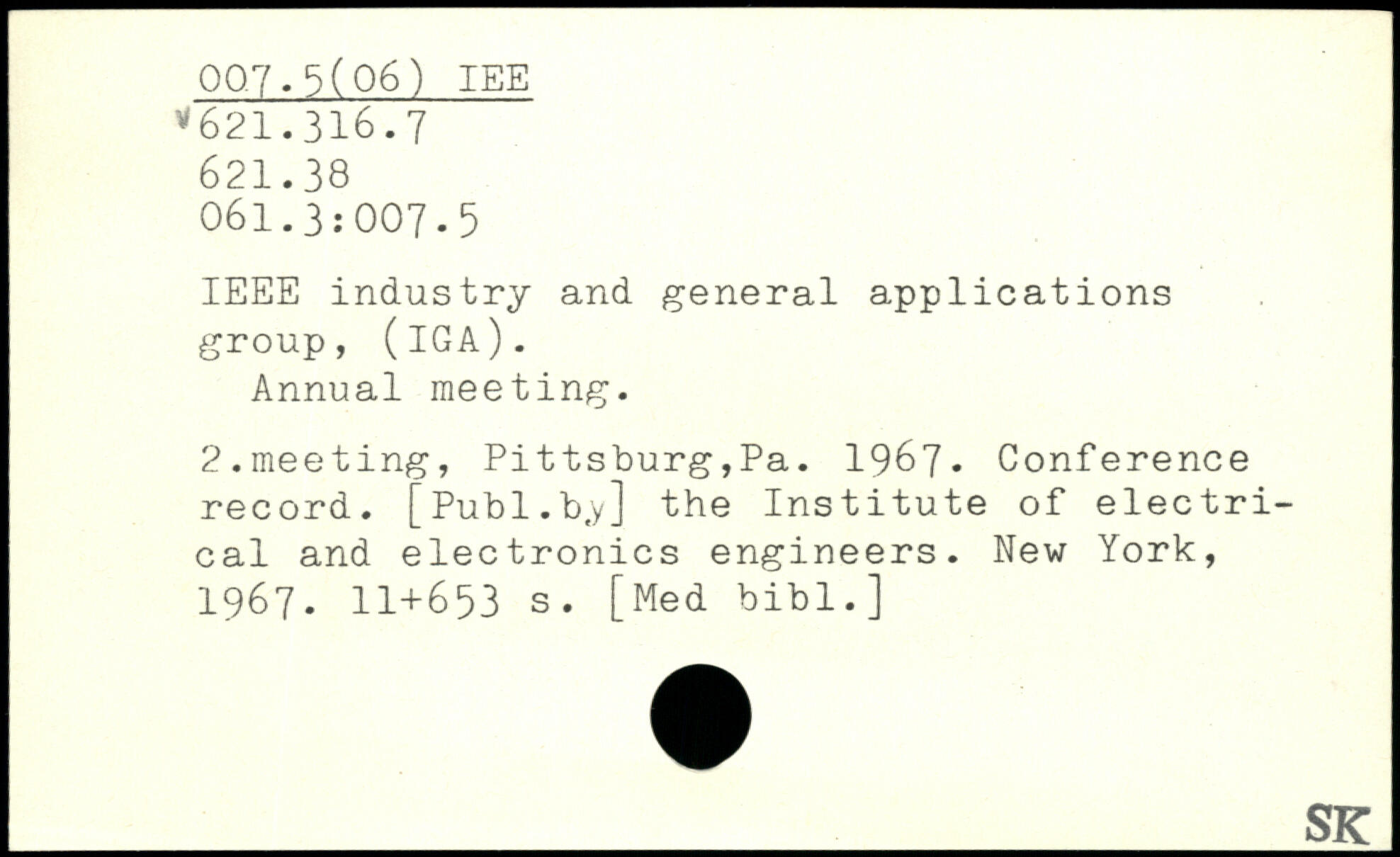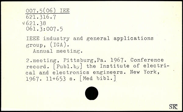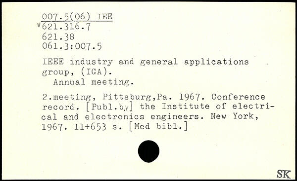 IEEE industry and general applications group, (IGA). Annual meeting. 2.meeting, Pittsburg,Pa. 1967. Conference record. [Publ.b.y] the Institute of electrical and electronics engineers. New York, 1967.