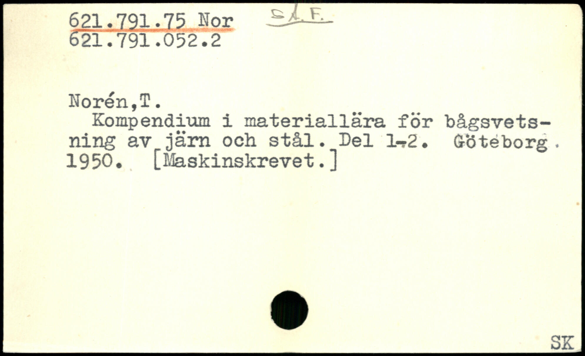 Kompendium i materiallära för bågsvets-ning av jarn och stål. Del l-?2. Göteborg. 1950. [Maskinskrevet.]