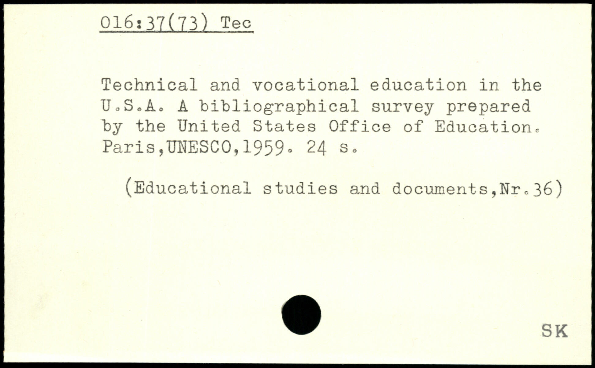 Technical and vocational education in the UaSaAo A bibliographical survey prepared by the United States