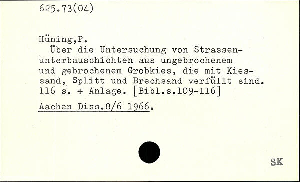 Über die Untersuchung von Strassen-unterbauschichten aus ungebrochenem und gebrochenem Grobkies, die mit Kiessand, Splitt und Brechsand verfüllt sind.
