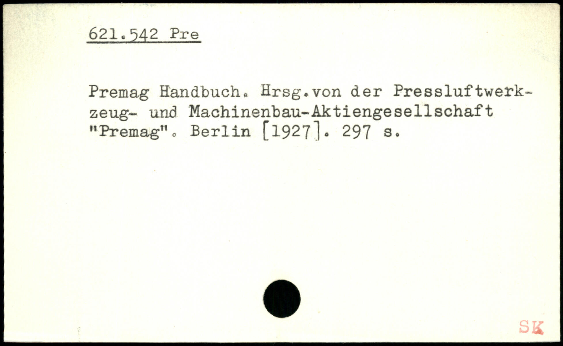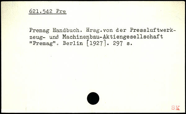 Premag Handbuch, Hrsg.von der Pressluftwerkzeug- und Machinenbau-Aktiengesellschaft "Premag”o