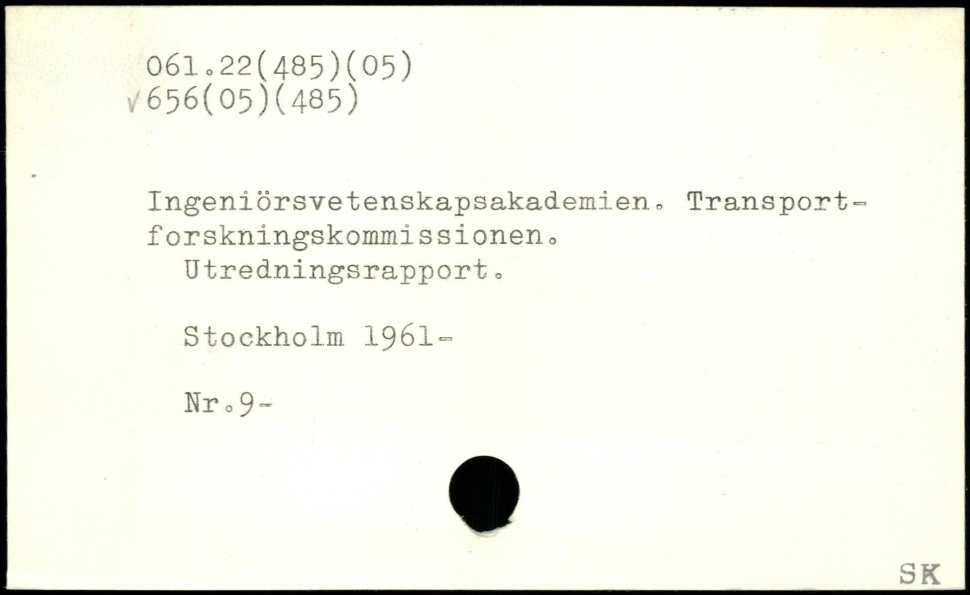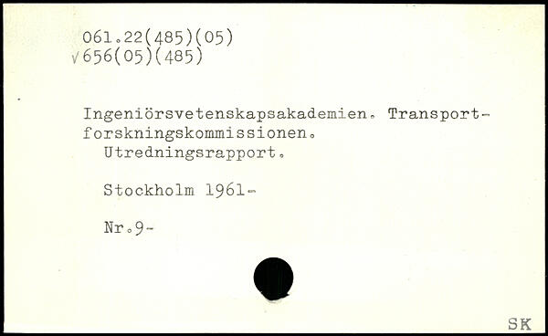Ingeniörsvetenskapsakademien, Transport-forskningskommissioneno Utredningsrapport , Stockholm. 1961- Nr o 9”