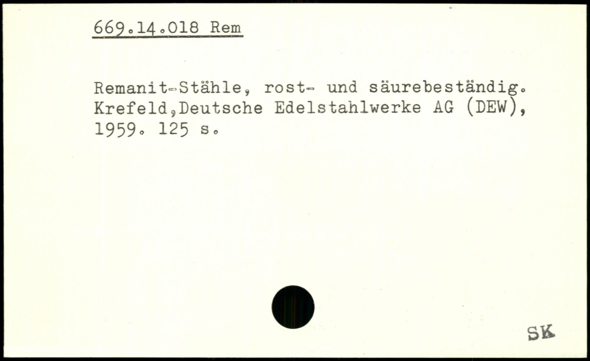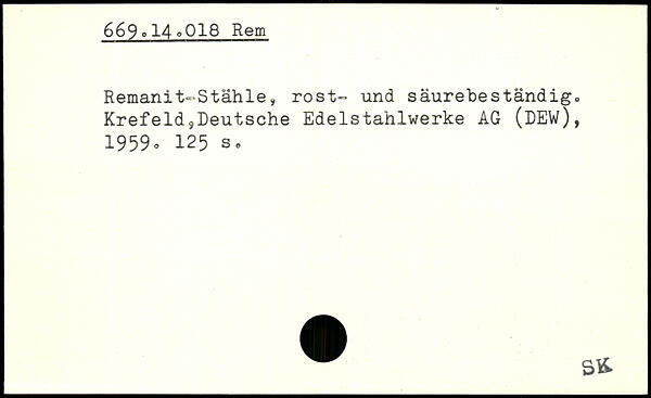 Remanit-Stählei rost- und säurebeständig, Krefeld,Deutsche Edelstahlwerke AG (DEW), 1959