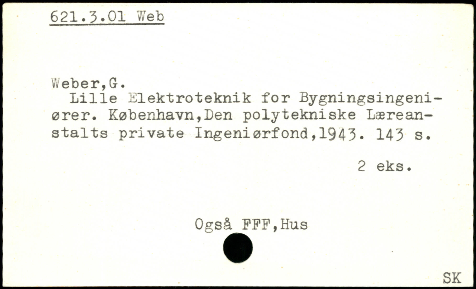 Lille Elektroteknik for Bygningsingeniører. København,Den polytekniske Læreanstalts private Ingeniørfond,1943.