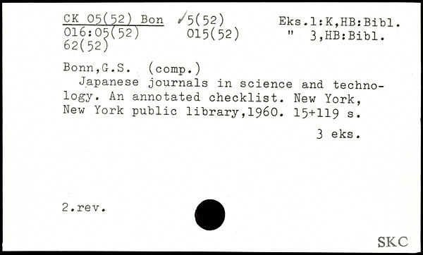 UDK: 05(52) Bon, 016:05(52), 015(52), 62(52)