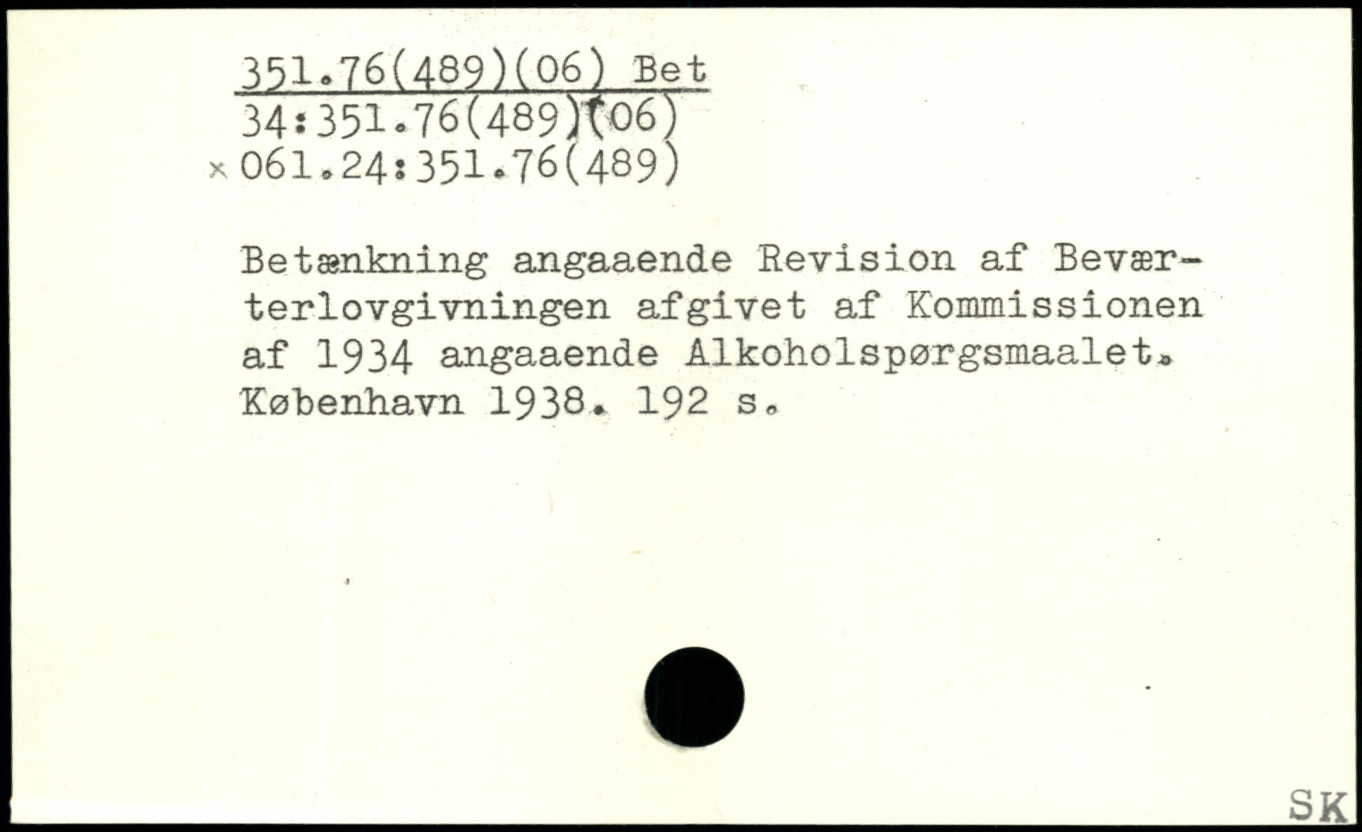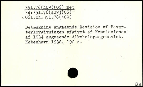 Betænkning angaaende Revision af Beværterlovgivningen afgivet af Kommissionen af 1934 angaaende Alkoholspørgsmaalet.