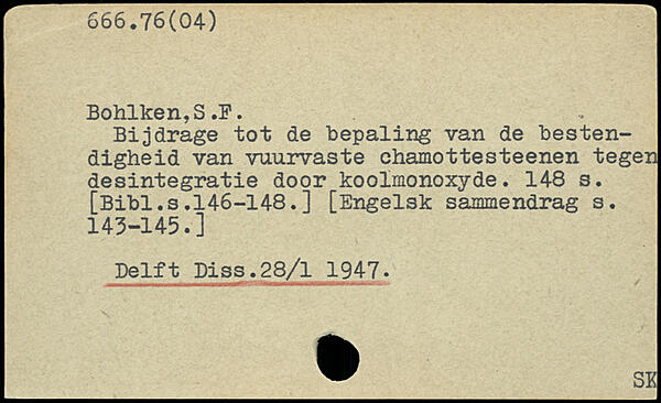 Bi3drage tot de bepaling van de besten-digheid van vuurvaste chamottesteenen tegen desintegratie door koolmonoxyde.