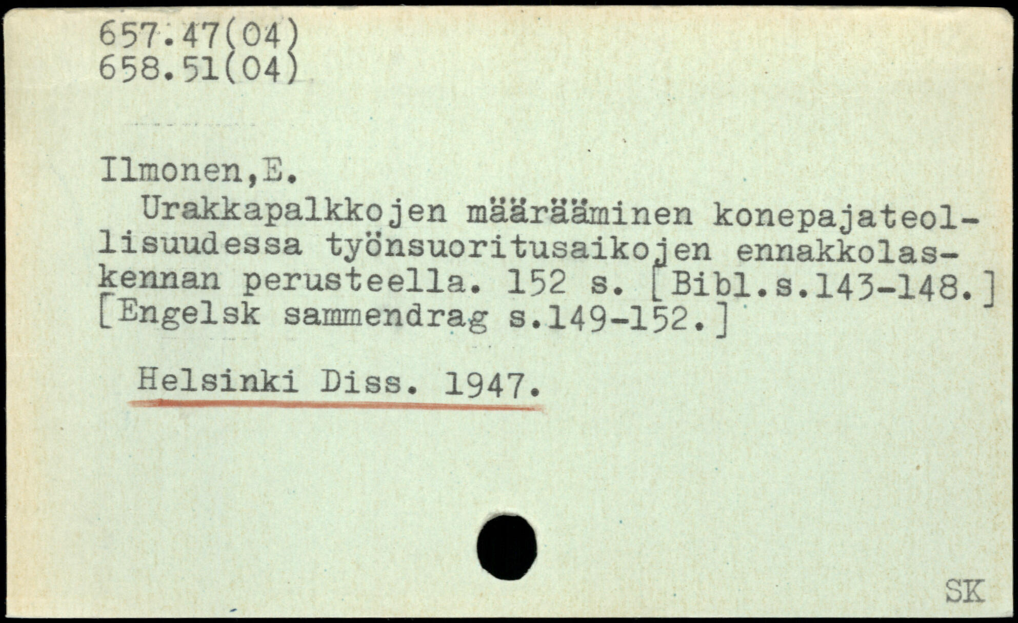 Unionen,S. i Urakkapalkkojen määrääminen konepajateol-lisuudessa ty’dnsuoritusaikojen ennakkolas-kennan perusteella.