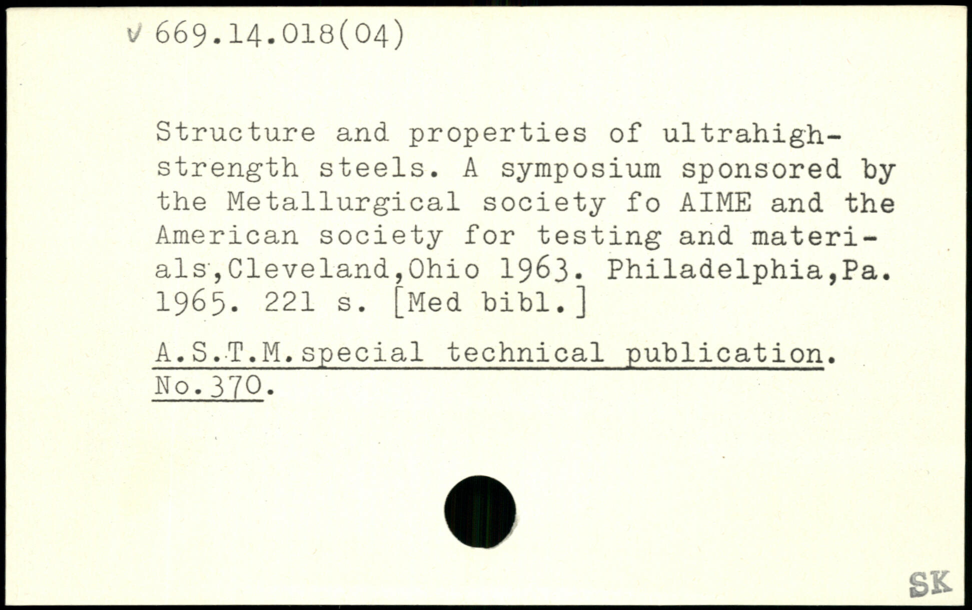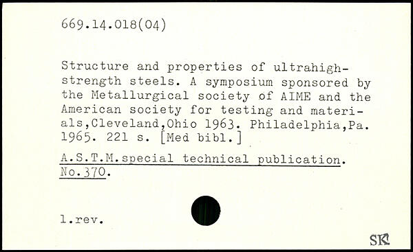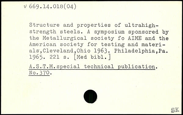Structure and properties of ultrahigh-strength steels. A symposium sponsored by the Metallurgical society of AIME and the American society for testing and materials