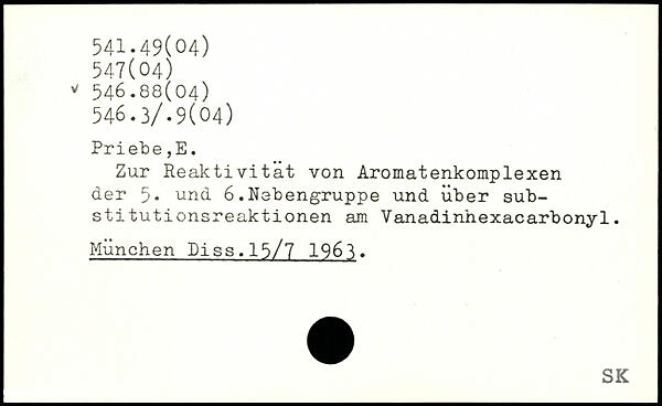 Zur Reaktivität von Aromatenkomplexen der 5. und 6. Nebengruppe und über sub-stitutionsreaktionen am Vana&inhexacarbonyl. München Riss.15/7 196