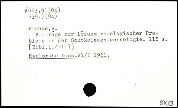 Beitrage zur Losung rheologischer Probleme in der Schokoladentechnologie.