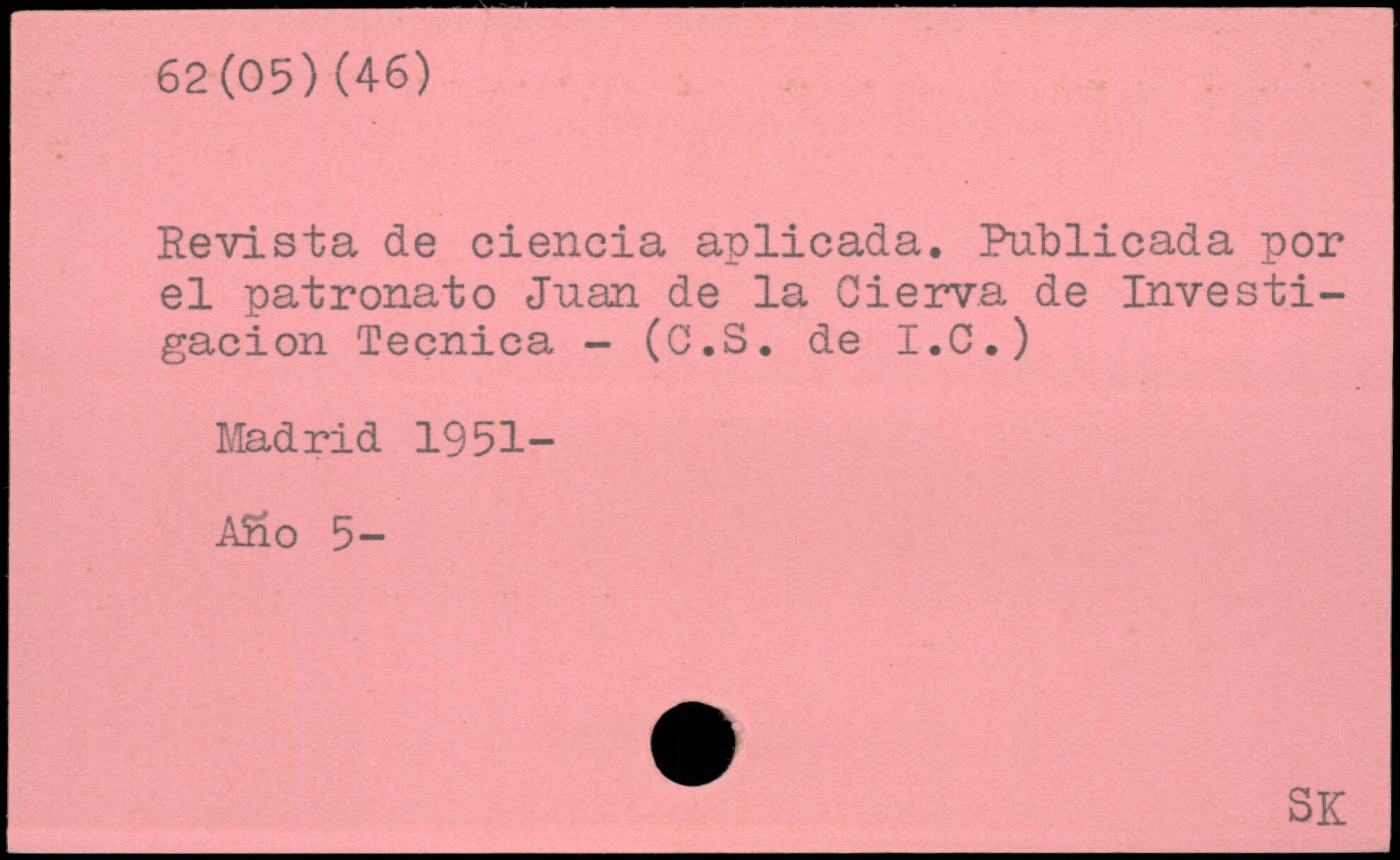 Revista de cieneia aplicada. Rublicada por el patronato Juan de la Cierva de Investi-gacion Tecnica - (C.S. de I.C.)